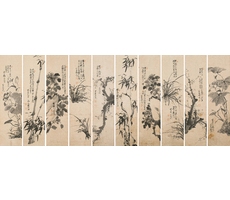 호접화조민화팔곡병 胡蝶花鳥民畵八曲屛