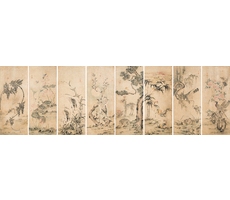 화조영모팔곡병 花鳥翎毛八曲屛·시고 詩稿 6폭