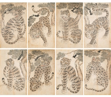 호작도팔곡병 虎鵲圖八曲屛