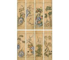 민화화조영모어해팔곡병 民畵花鳥翎毛魚蟹八曲屛