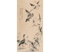 비단에 수묵담채