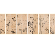 화조영모팔곡병 花鳥翎毛八曲屛
