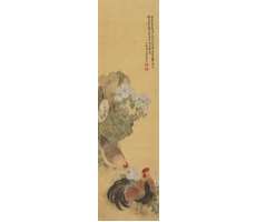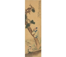 비단에 수묵담채