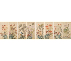 화조팔곡병 花鳥八曲屛