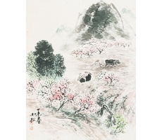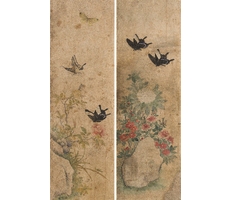 비단에 수묵담채