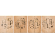 문방책거리팔곡병 文房冊架圖八曲屛