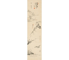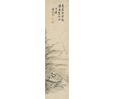 비단에 수묵담채