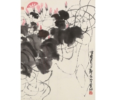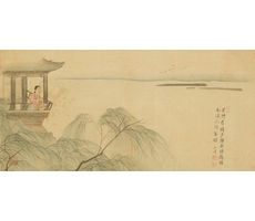 비단에 수묵담채