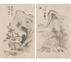 종이에 수묵/ 부채, 액자