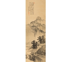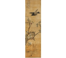 비단에 수묵담채