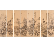 산수팔곡병 山水八曲屛