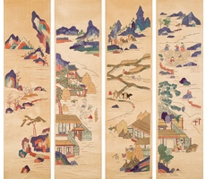 자수경작도 刺繡耕作圖 4폭