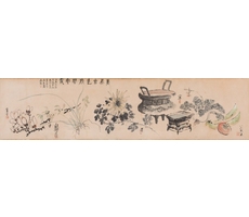 비단에 수묵담채