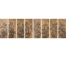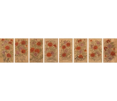 모란영모팔곡병 牡丹翎毛八曲屛