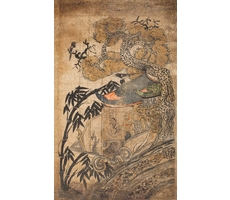 비단에 수묵채색