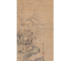 비단에 수묵담채