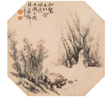 비단에 수묵담채