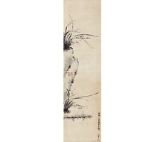 비단에 수묵담채