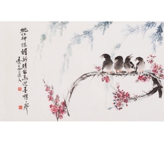 새와 복숭아꽃