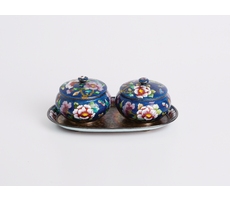 은제칠보모란문차통·받침 銀製七寶牡丹文茶桶·盤