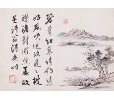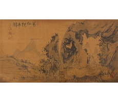 비단에 수묵담채