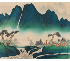 청록산수 靑綠山水 : 송하유록 松下遊鹿