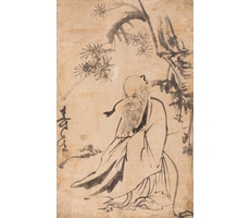 비단에 수묵담채