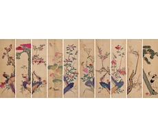 자수화조십곡병 刺繡花鳥十曲屛