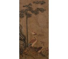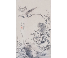비단에 수묵담채