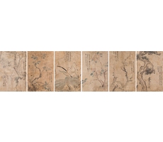 송매화훼육곡병 松梅花卉六曲屛