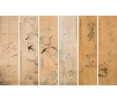 고사인물 高士人物·화조영모육곡병 花鳥翎毛六曲屛