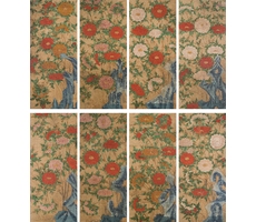 괴석모란팔곡병 怪石牡丹八曲屛