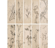 괴석사군자십곡병 怪石四君子十曲屛