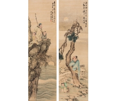 비단에 수묵담채, 종이에 먹