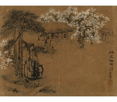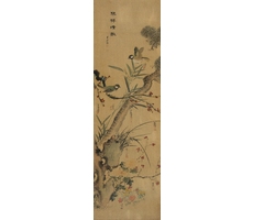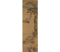 비단에 수묵담채